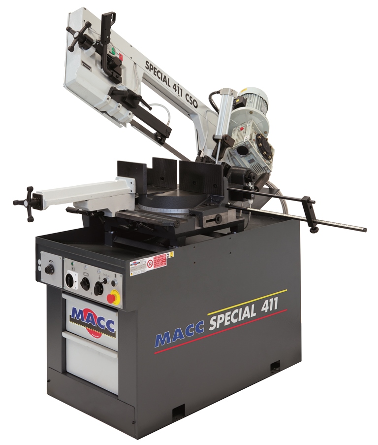 - Tensionamento lama ottenuto tramite rotazione manuale del volantino e garantita da dispositivo elettromeccanico